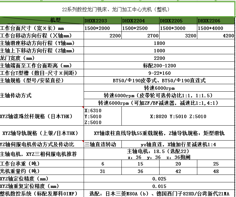 2. Z軸行程标(biao)配800/1000(選配可(kě)加高到1250)