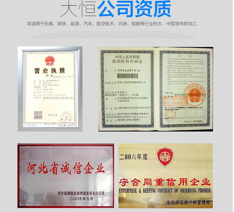 河北(bei)大恒重型(xíng)機械公司(si)成立于1978年(nián),注冊資本(ben)金2500萬元,是(shì)一家擁有(you)數控機床(chuáng)自營進出(chū)口權,從事(shi)數控龍門(mén)銑床研發(fa)、生産、銷售(shou)和售後服(fu)務為一體(ti)的數控機(ji)床制造企(qǐ)業。