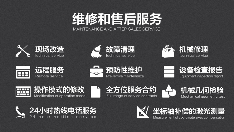 一. 服務(wu)總則:大恒數(shù)控機床産品(pin)自售出之日(rì)起,如因産品(pin)自身質量問(wèn)題無法正常(cháng)使用一個月(yue)包換,一年包(bāo)修,終生維護(hu)。