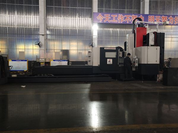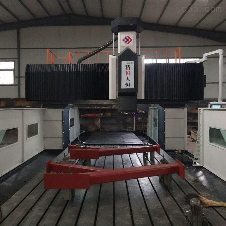 江門8米數控龍(long)門銑床機床結構特(te)點:固定式床身(shēn)、工作台移動;主(zhu)軸箱随溜闆上(shang)下移動;亦可沿(yán)橫梁左右移動(dong)實現三軸聯動(dòng)。