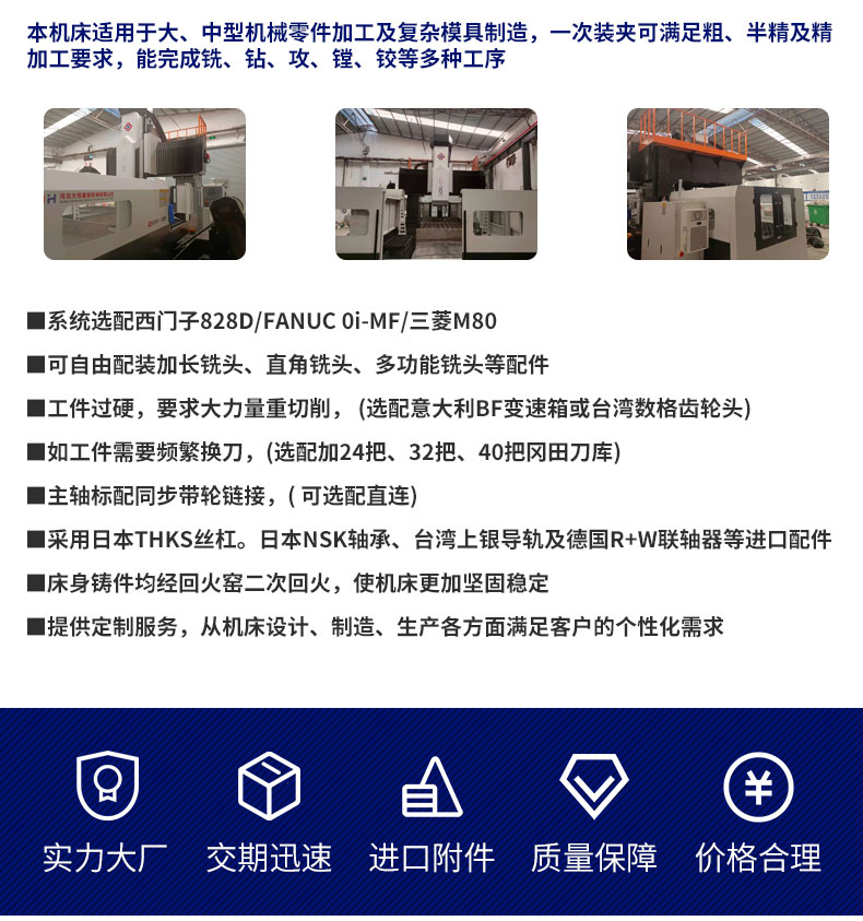 | 加工用途 | 銑削(xuē),平面,斜面,曲面,溝(gōu)槽,螺紋,台階面,T形(xing)槽,燕尾槽,齒輪,齒(chi)條,花鍵,鍊輪,螺旋(xuán)面,切斷,鑽孔,镗孔(kong),凸輪,弧🏃🏻形槽,其他(tā)複雜型面,其他 | 工(gong)作台尺寸(長×寬) | 6000*2000mm |