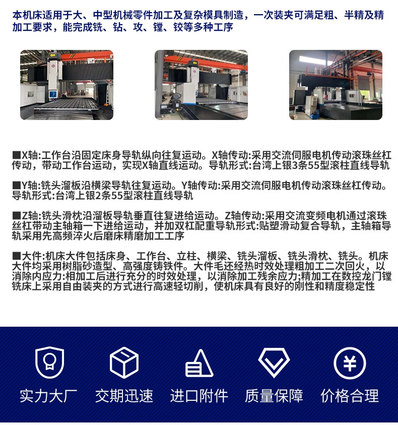 産品描述:8米(mi)大型數控龍(lóng)門銑床 重切(qiē)削銑床